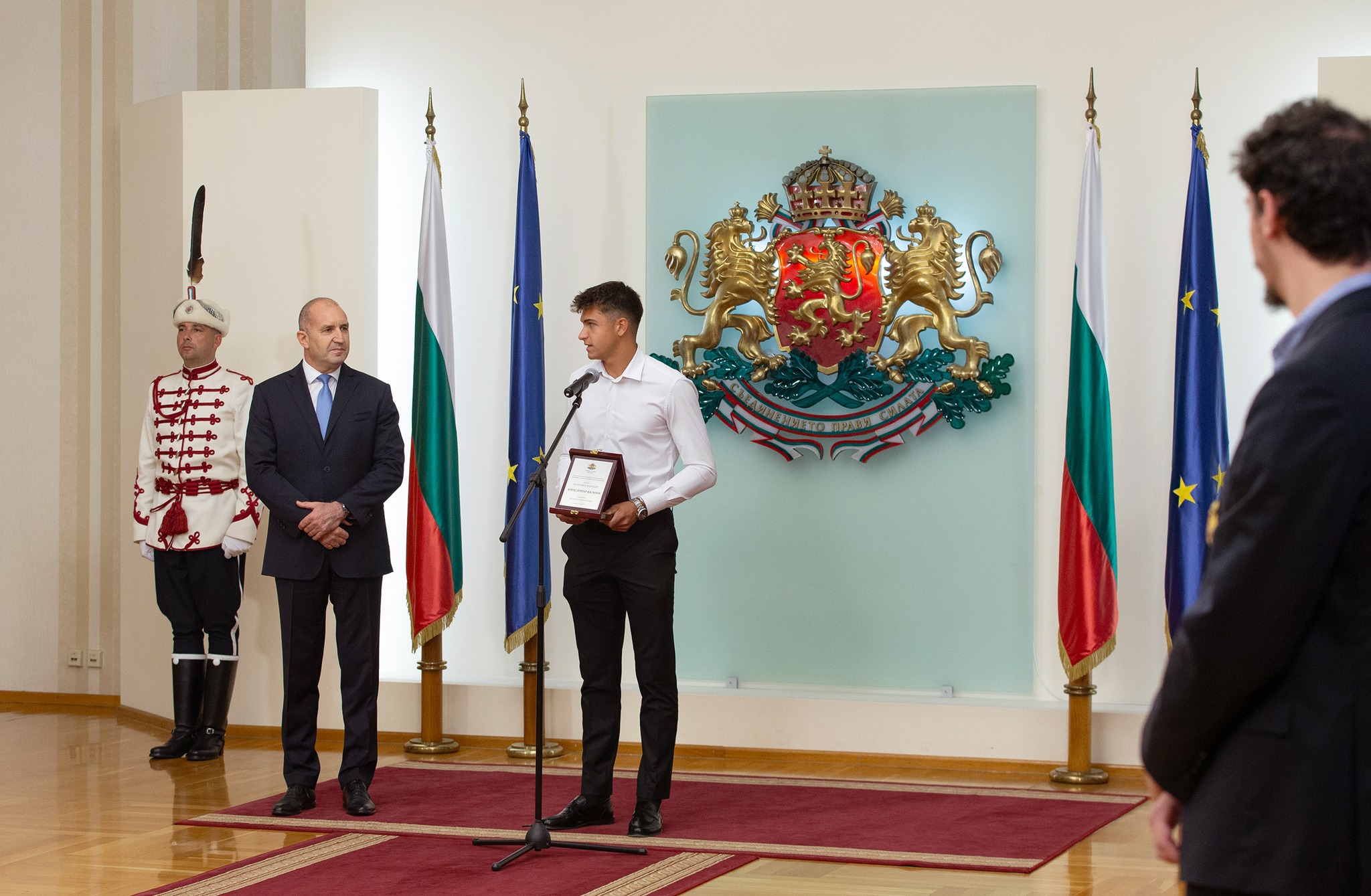 Спечеленият от Иван Иванов юношески тенис турнир „Уимбълдън“ и полуфиналът на Александър Василев са забележителни успехи и атестат не само за безспорните качества на нашите тенисисти – воля, талант и всеотдайност, но и израз на несломимия български дух и воля за победа. С млади хора като тях България има бъдеще и ще стои гордо на световната сцена. За мен е огромно удоволствие да ги посрещна в президентската институция и да ги удостоя с Почетен плакет на президента на Република България.