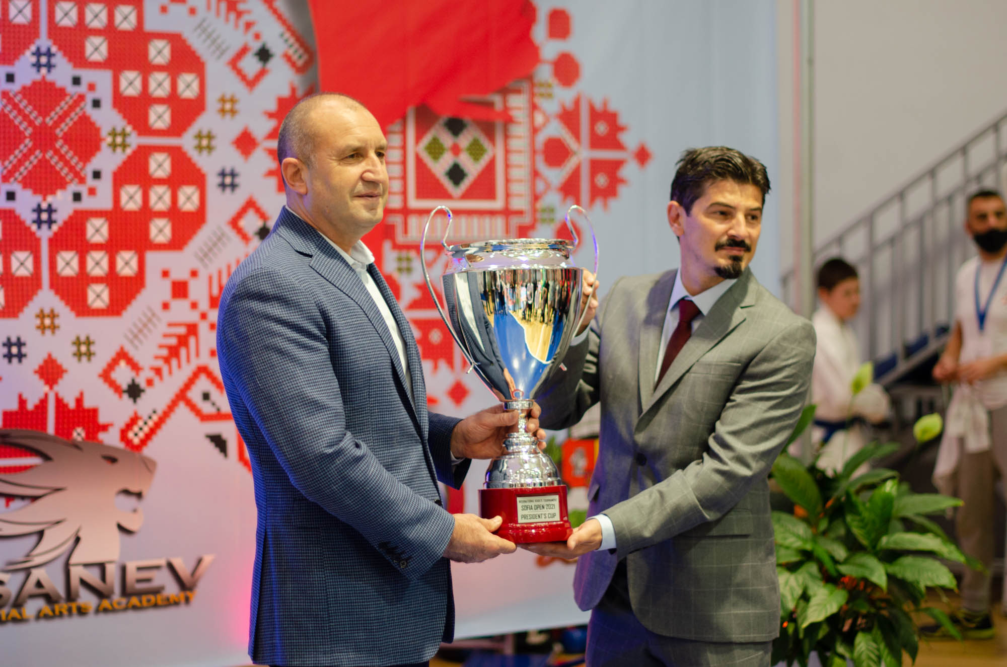 Освен че развива физически качества и способности, спортът изгражда преди всичко характер, изгражда личности, калява волята и психиката. Спортът възпитава в екипен дух и уважение към другия. Това заяви държавният глава Румен Радев, който днес в училище „Свети Георги“ в София откри турнира Sofia Karate Open 2021 – Купа на президента.