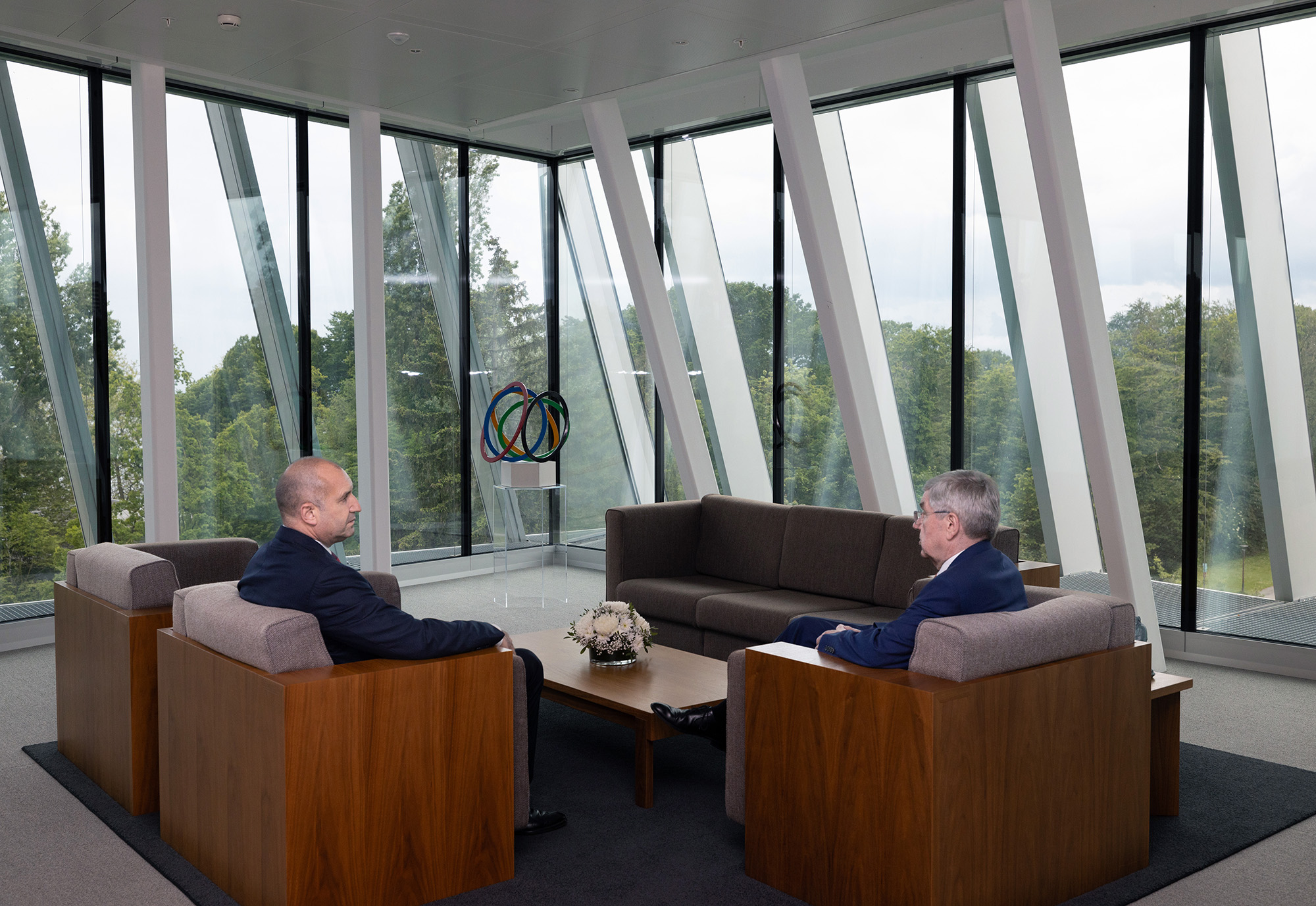 Томас Бах посрещна президента Радев в Олимпийския музей в Лозана. Експозицията проследява историята на Олимпийското движение от 1896 година до днес. В него са увековечени важни за световния спорт достижения, някои от които на български спортисти. Сред тях е поставеният рекорд от 209 см. от Стефка Костадинова в скока на височина, недостижим и до днес. В музея е изложена и оригиналната летва, която Костадинова преодолява.