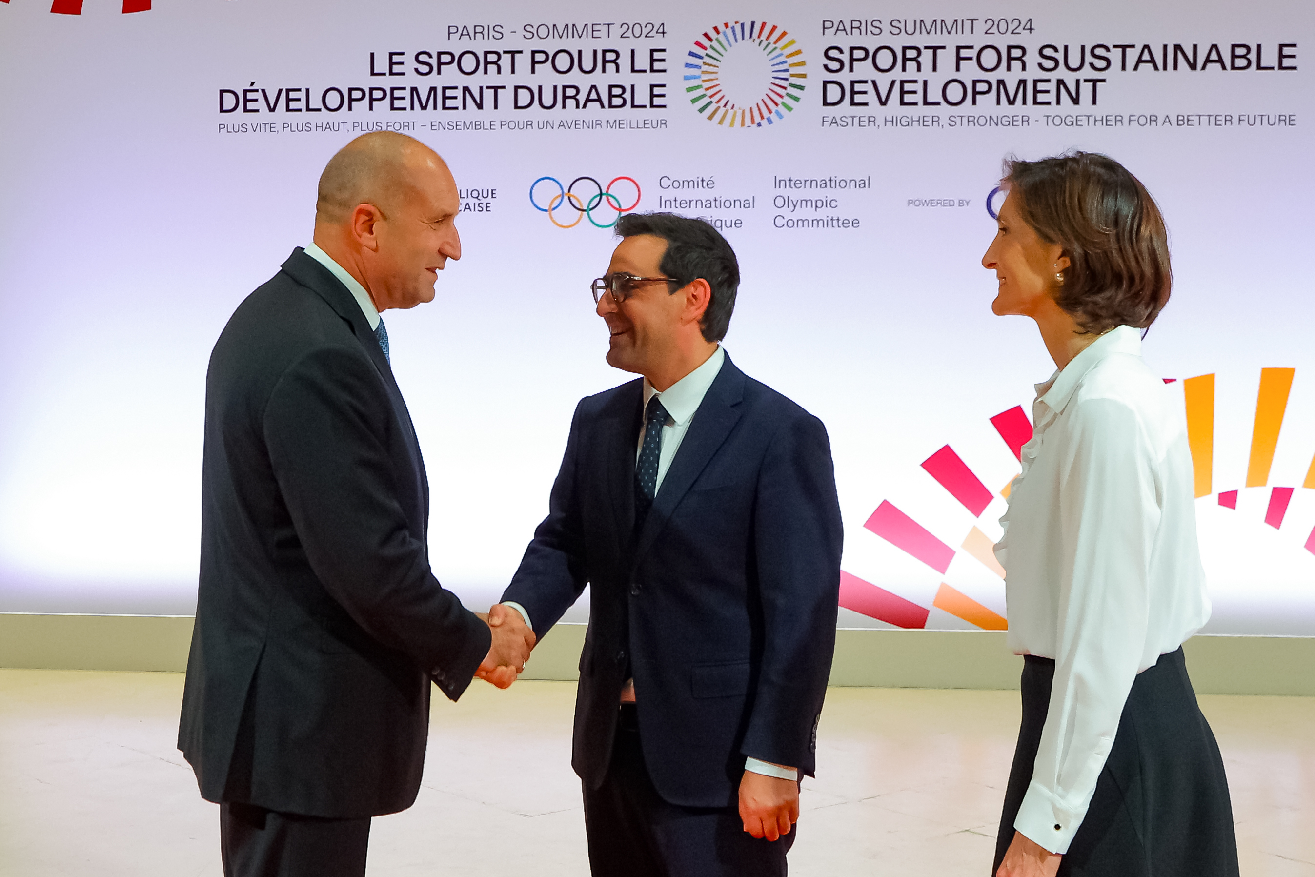Държавният глава Румен Радев участва в Срещата на върха „Спорт за устойчиво развитие“, която се състоя в Париж в навечерието на началото на ХХХІII Летни олимпийски игри. Българският президент е във Франция по повод откриването на Олимпиадата по покана на френския си колега Еманюел Макрон и на президента на Международния олимпийски комитет Томас Бах. Срещата на високо равнище днес се проведе под домакинството на Еманюел Макрон и Томас Бах.