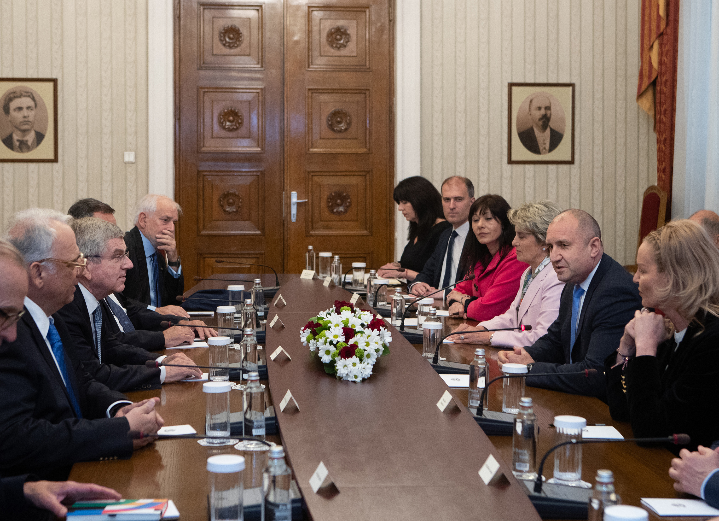 "Мисията на олимпийското движение е да утвърждава мира и международното разбирателство." Това заяви държавният глава Румен Радев, който по-рано през деня прие на президентa на Международния олимпийски комитет. Томас Бах е в България за тържественото отбелязване на 100-годишнината от основаването на Българския олимпийски комитет. В срещата участва и председателят на Българския олимпийски комитет Стефка Костадинова, министърът на спорта Весела Лечева, както и президентът на Европейския олимпийски комитет Спирос Капралос.