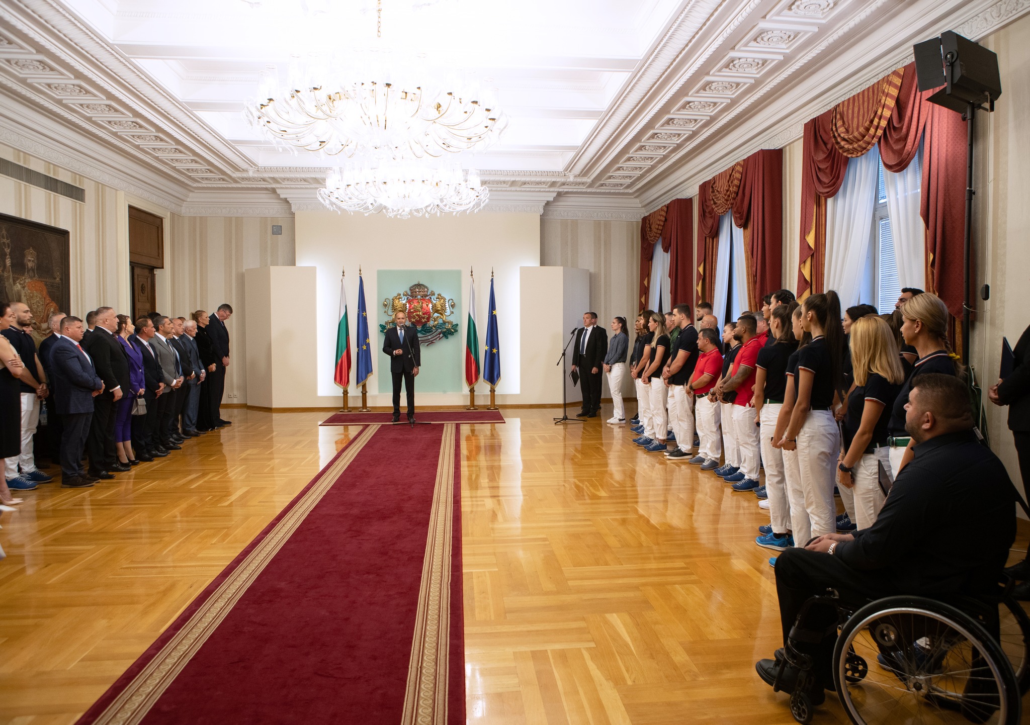 "С всеотдайност, невероятна воля, труд и себераздаване българските атлети направиха така, че на Летните олимпийски игри в Париж светът отново да заговори за непобедимата ни спортна школа. За нашия народ постиженията на спортистите ни във френската столица не са просто парче благороден метал или студена статистика, която отчита къде се намира България на световната спортна карта в момента. Техните олимпийски мечти и смелостта и постоянството, с които бяха постигнати, са образец за цялото ни общество и тяхното най-голямо постижение е, че ни накараха да се чувстваме горди, че сме българи. Че ни дадоха вяра, че можем да се мерим с най-големите и да ги побеждаваме. Тези победи са и пример за подражание най-вече за младите хора на България, че спортът е сред дейностите, които сплотяват и изграждат характер, воля и увереност пред предизвикателствата на бъдещето." - това бяха част от думите на Президента Румен Радев по време на церемонията по награждаването на медалисти, финалисти и треньори от Олимпийските игри Paris 2024