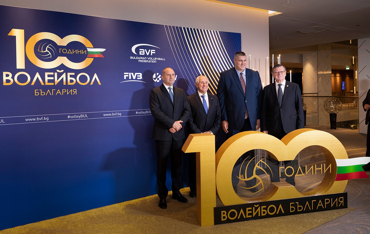 Президентът на републиката Румен Радев уважи церемонията по случай отбелязването на 100 години волейбол в България. Сред официалните гости на вековния юбилей бяха президента на FIVB Ари Граса и на CEV Александър Боричич.