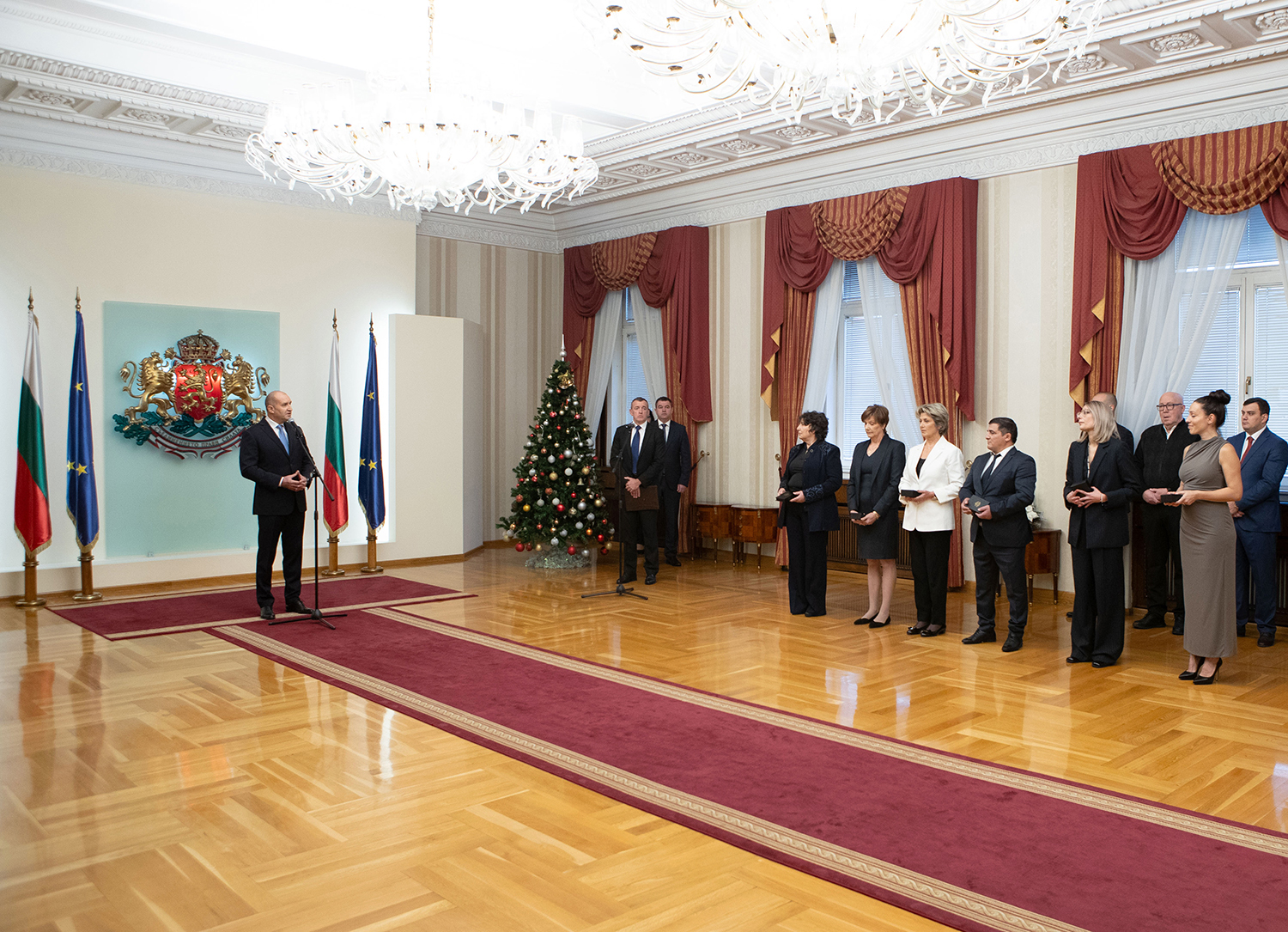 „Десетилетия наред вие разнасяте славата на Родината по целия свят и доказвате, че за човешките възможности няма предел“, обърна се държавният глава към отличените. По думите му връченият Почетен знак на президента е израз на дълбокото признание на цялото ни общество към легендите на българския спорт, които неведнъж са ни вдъхвали гордост, че сме българи. „Техният шампионски път е ценен урок по родолюбие и пример за всички млади българи, устремени към успеха“, посочи Румен Радев.